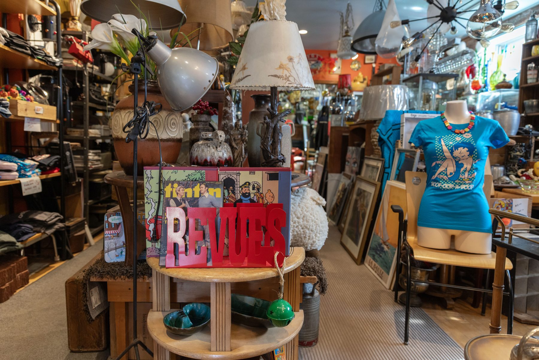 L’univers kaléidoscopique de Vertige vous propose un volet Made in China avec des objets et vêtements à l’effigie de Betty Boop, Elvis Presley et autres. Il y a aussi une quantité de parapluies, lunettes de soleil, cartes de souhaits, horloges, peluches et bijoux, etc. Un autre volet Not Made in China vous propose des objets rétro / kitch, du genre lampes, plafonniers, petits meubles et découvertes inusitées de votre propre chasse aux trésors!