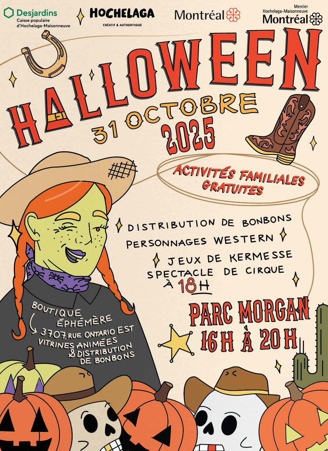 À partir de 16 h, les jeunes cowboys et cowgirls seront invité∙e∙s à participer à un rallye chez les commerçant∙e∙s de la rue Sainte-Catherine Est et devront répondre aux énigmes tout en faisant preuve d’observation pour trouver le nom du personnage western.